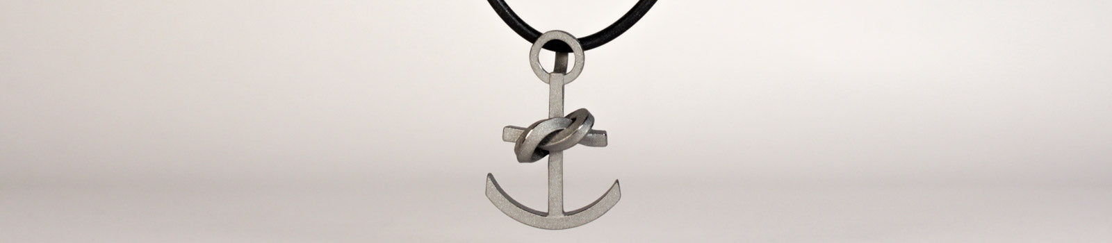 Die maritime Anmutung des Knotens erfährt im AnkerKnoten seine Krönung. Das Design wurde zusammen mit einem echten Seemann entwickelt, der Inspirationen für die perfekte Form des Ankers gab. Der Knoten im Zentrum des Schmuckstücks fügt sich harmonisch in das Design ein und betont die symbolische Aussage für Halt, Stärke und „vor Anker gehen“, im Leben angekommen zu sein. Zusammen mit dem Kreuz und dem Herz vollendet der Anker als Zeichen der Hoffnung die Trilogie Glaube, Liebe, Hoffnung.