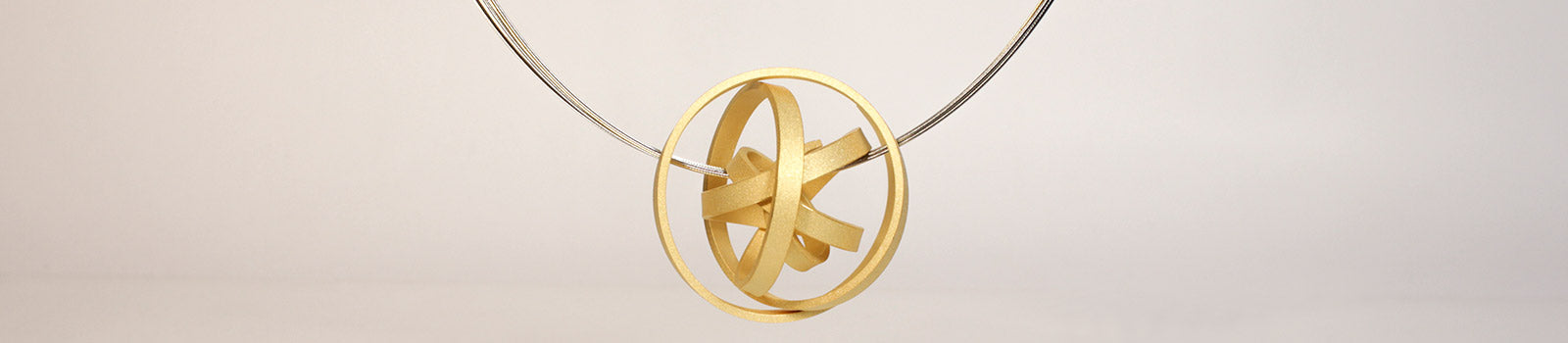 Der KugelKnoten lädt zum Labyrinthspiel ein! Die großzügig ineinander verschlungenen Bahnen kreuzen und umspielen sich, flirten miteinander, schmeicheln und entfernen sich, um sich stets wieder zu finden. Anfang und Ende sind offen, doch in der Kugel sorgt das scheinbar zufällige, doch durchdachte Wirrwarr für magische Anziehung – denn wer möchte nicht herausfinden, welchen Verlauf das dynamische Gold- oder Silberband nimmt?