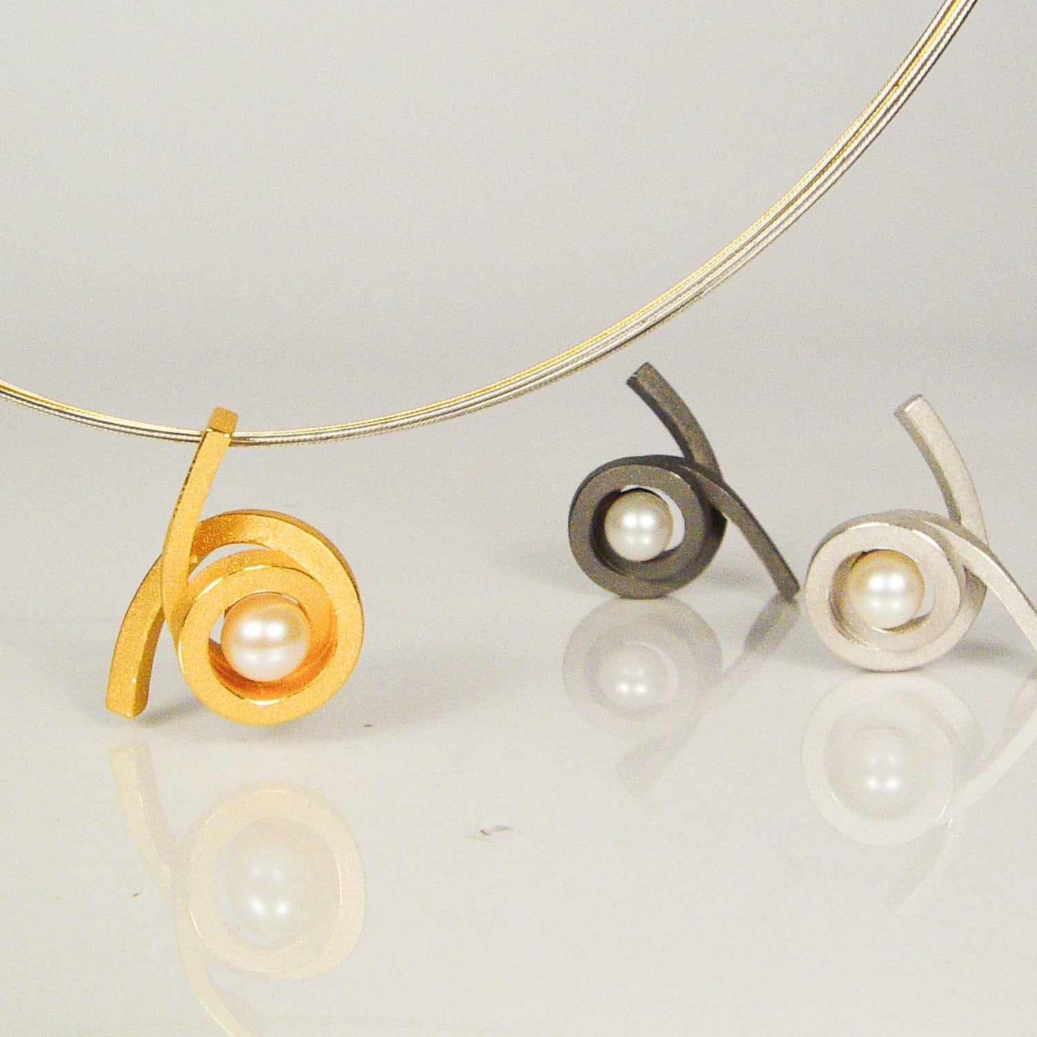 Die Perlspirale umschließt eine feine Perle – sanft, schützend, wie eine Umarmung. Aus massivem Edelmetall geformt, dreht sich die Spirale um das Zentrum des Lebens und trägt darin ihre Botschaft: Schutz, Hoffnung und Liebe.
